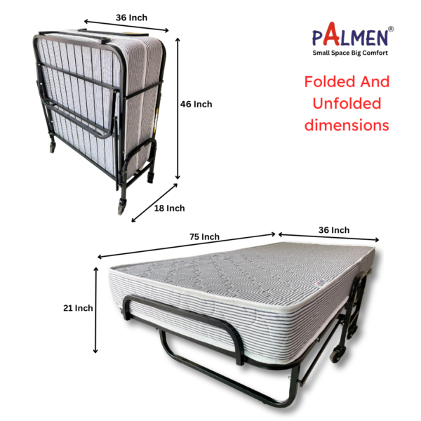 Original price was: ₹23,553.00.₹13,649.00Current price is: ₹13,649.00.Memory Monarch Roll Away Folding Bed With 4 Inch Memory Foam Mattress